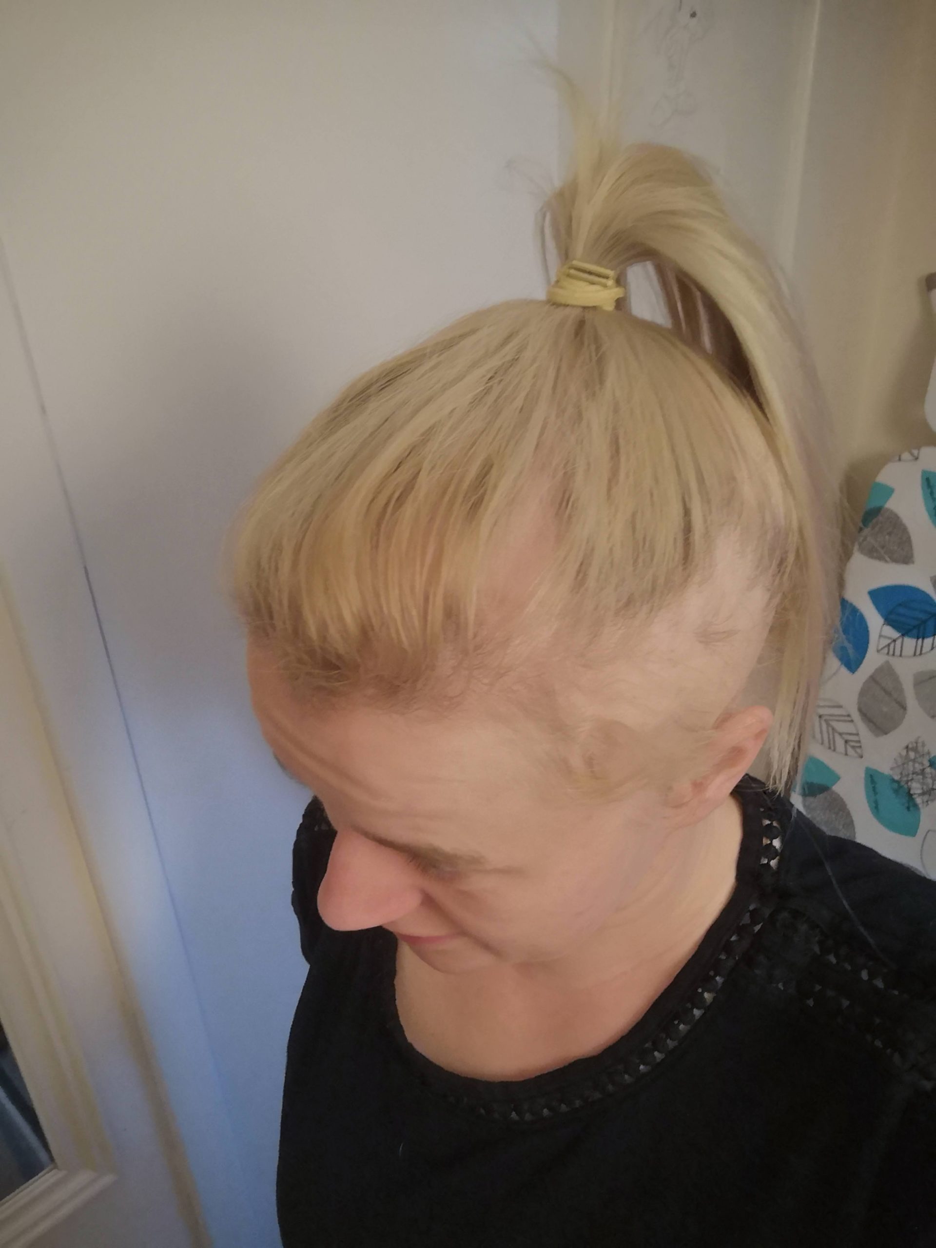 When the hair loss is in a place you can`t hide or more likely it has taken over most of your hair, my best advice is to shave it all off. I know this is extreme measures and can be a bit much for anyone, it was for me, but I did it anyway.