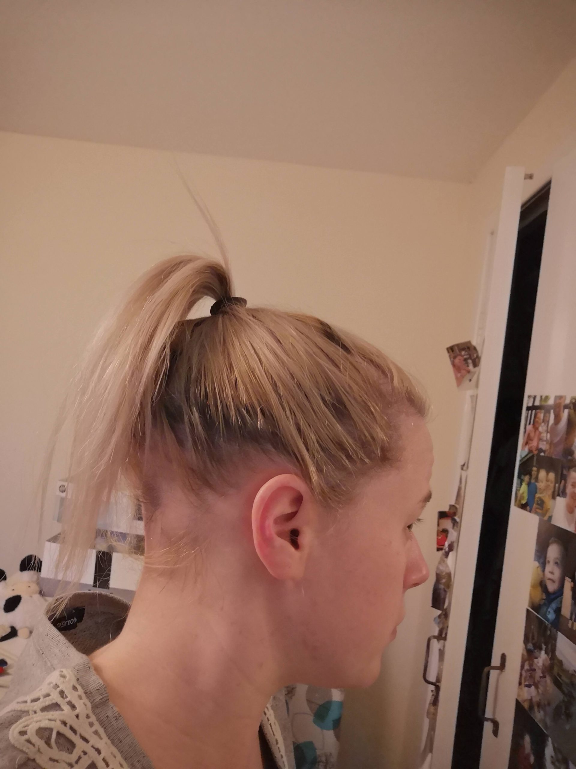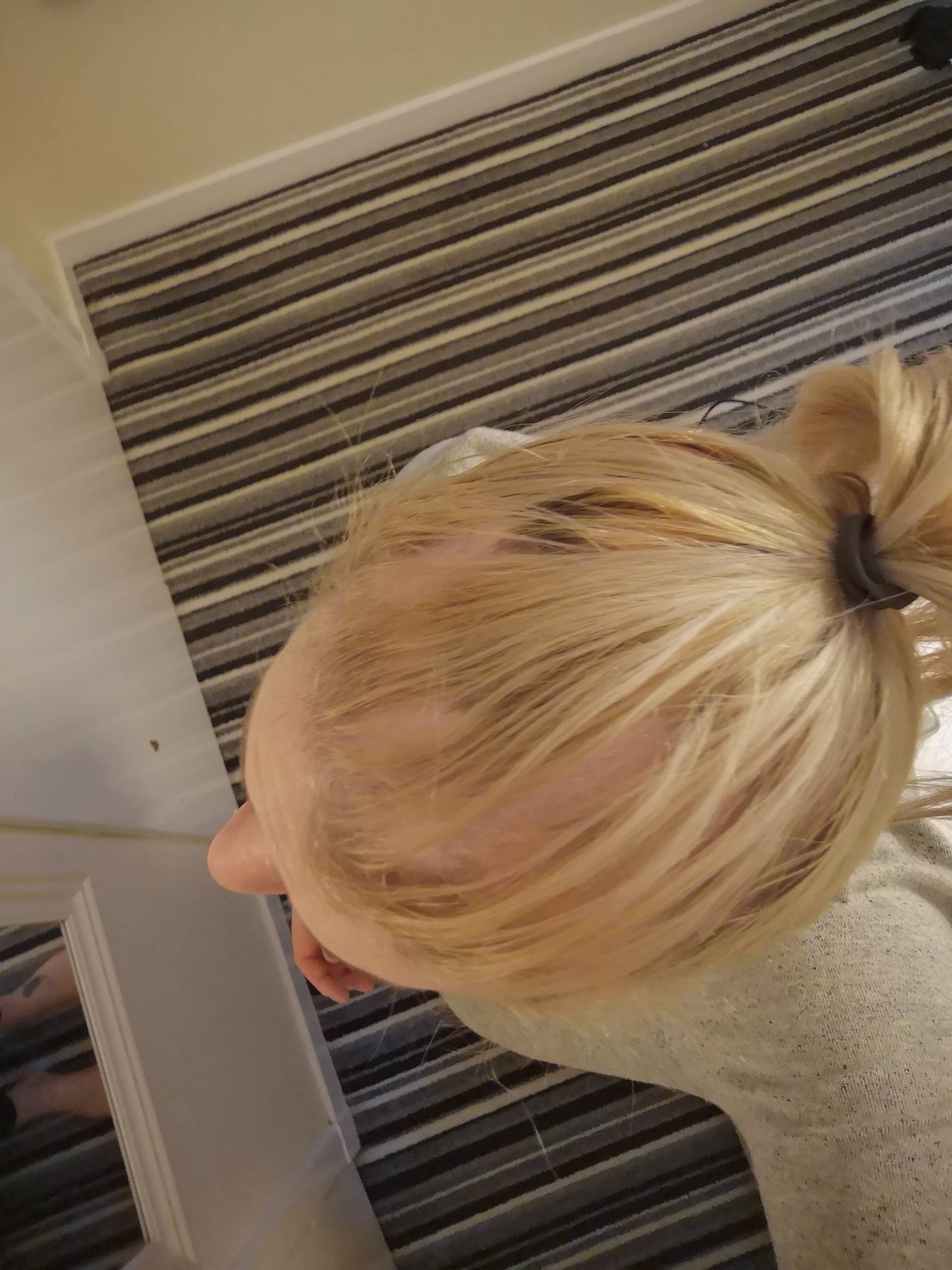 I didn`t go out often and when I did, I was convinced everyone knew.. secretly signing “nobody will know” (the ridiculous tiktok song) in my head trying to fool myself. In reality, no one did know. It was winter i could wear a hat all of the time and the only place I had to wear a head band instead was work (because it`s so damn hot.)