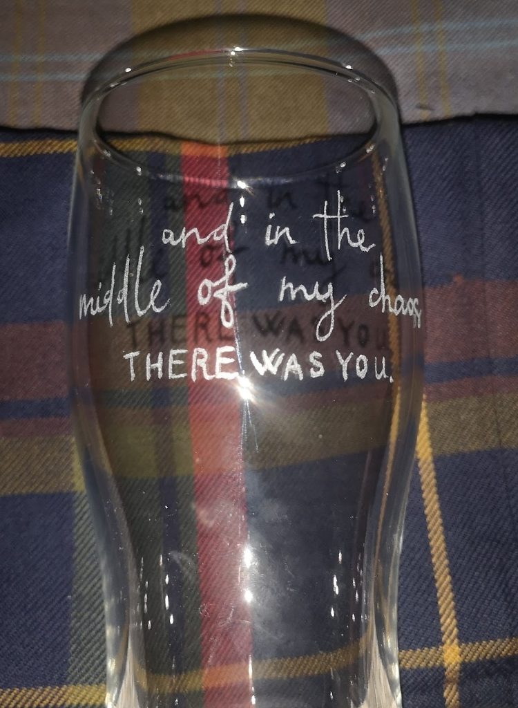 Your chosen material: glasses, photo frames, slate, wood whatever your choice ensure you practice and are comfortable before trying on what will be your finished product. Glasses come as cheap as 50p from Asda and Tesco and frames you can get from Home bargains for £1 or less. The pound shop is also great for finding equiptment to personalise. Scrap wood is also idea for upcycling as it would be going to waste most of the time anyway.